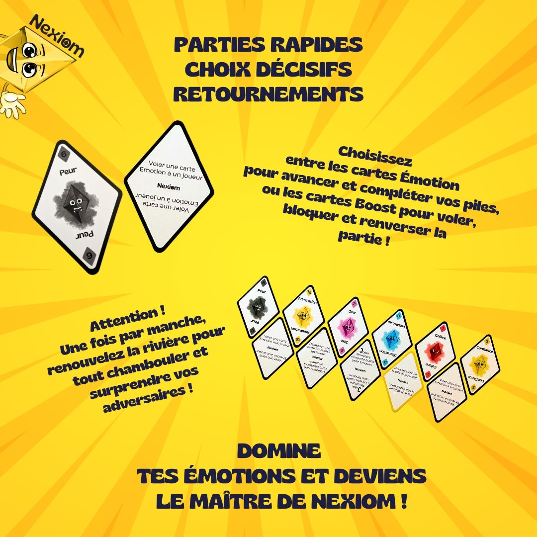 Découvrez NEXIOM, un jeu malin où stratégie et hasard se combinent pour révéler une profondeur tactique qui séduira curieux et stratèges aguerris.